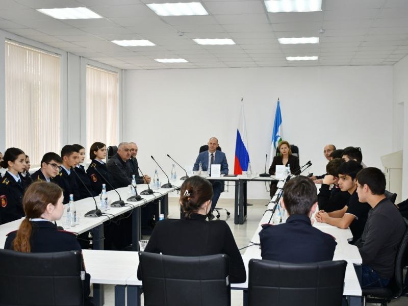 Министр внутренних дел по Кабардино-Балкарской Республике генерал-лейтенант полиции Вячеслав Крючков встретился с кадетами-амбассадорами федерального проекта «Профессионалитет»