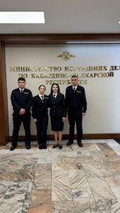 В Министерстве внутренних дел по Кабардино-Балкарской Республике состоялась торжественная церемония посвящения в кадеты полиции учащихся МКОУ СОШ №7 г.о. Нальчик Представители ведомств приняли Присягу у школьников, которые дали клятву на верность Родине. Обращаясь к молодым людям, сотрудники полиции отметили, что принятие Присяги играет значимую роль в установлении моральной и правовой ответственности, формировании профессиональных и личных ценностей. В торжественной церемонии принятия Присяги приняли участие студенты кадетских групп ГБПОУ «Кабардино-Балкарский гуманитарно- технический колледж» по специальности Правоохранительная деятельность Шалова Элина Муратовна Масаев Ахмат Заурович Шиков Алибек Русланович поздравившие юных друзей, со столь важным событием в их жизни.