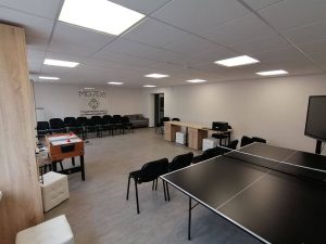 Здесь есть всё для студенческой жизни: место для мероприятий, собраний, проектов и содержательного досуга. Пространство легко меняется под разные задачи — от лекций и кинопоказов до игр и групповой работы.