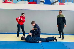 В спортивном зале Управления Госавтоинспекции студентам представилась уникальная возможность освоить приемы самообороны под руководством настоящего профессионала.
