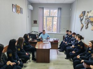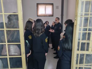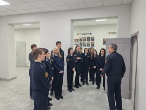После этого экскурсия продолжилась посещением комнаты разборов для задержанных правонарушителей. Начальник ПДН рассказал студентам кто может быть доставлен в комнату для разбора и о сроках задержания правонарушителей.