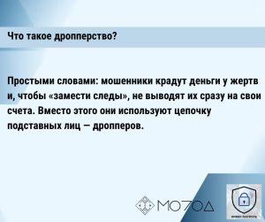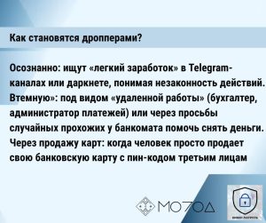 Это люди, которые становятся посредниками в криминальных схемах вывода незаконно добытых денег. Их используют злоумышленники, чтобы запутать следы и уйти от ответственности. А вот сами дроперы чаще всего остаются крайними…