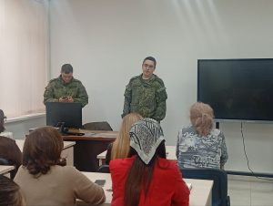 Представители Вооруженных Сил РФ посетили ГБПОУ Кабардино-Балкарский гуманитарно- технический колледж для проведения профориентационных встреч с целью привлечения молодежи к военной службе по контракту и поступлению в вузы Минобороны. В ходе встречи сотрудники и студенты были ознакомлены с преимуществами профессии офицера. Встреча включала беседы о патриотическом воспитании молодёжи. Представители рассказали о правилах поступления в военные вузы. Разъяснили условия и преимущества службы. Встреча была направлена на формирование у студентов чувства долга и любви к Отечеству.