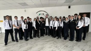 Гости- представители Росгвардии, выпускник КБГТК-Тхагалегов Алан -ветеран Специальной военной операции и полковник Хужоков Руслан Бетужанович , который рассказал о подвиге, героизме сотрудников во время спецоперации.
