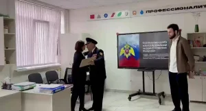 Студенты подготовили презентацию об истории создания Росгвардии, и с интересом просмотрели фильм о Росгвардии КБР. В завершении встречи гости и студенты почтили память погибших минутой молчания
